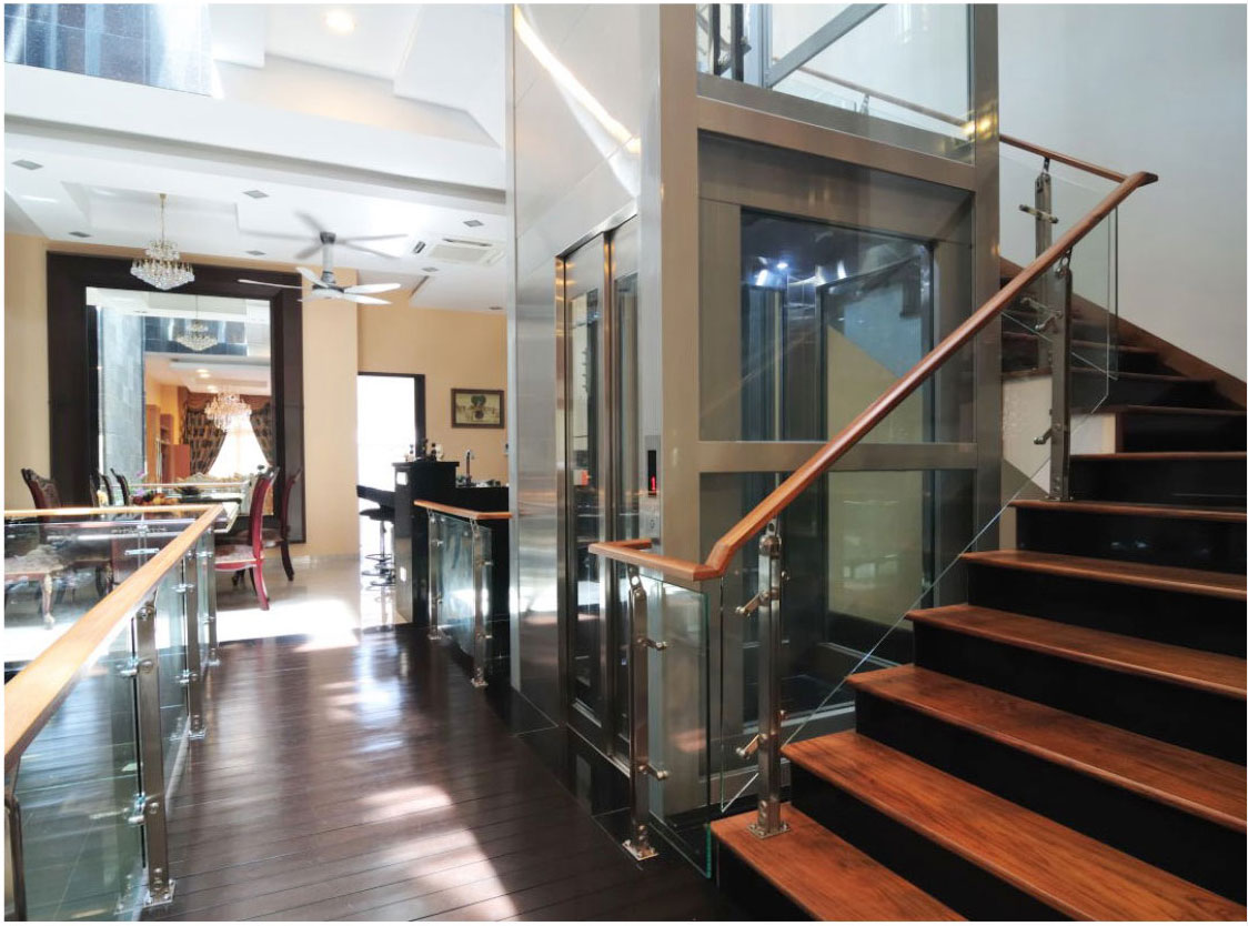 The correct definition is a home elevator, where the occupants arbitrarily shuttle through the home, showing the convenience of the home of the exclusive owner of the king. The car is very beautifully decorated, and a mirror-shaped stainless steel plate on the back side of the car is lighted and mapped to make the car wider and more luxurious.